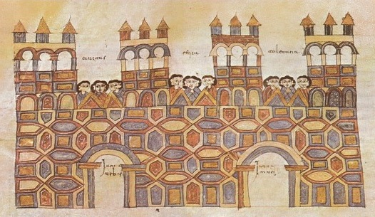 17.- Murallas y puertas de Toledo, en Codex Vigilanus (ss. IX-X)